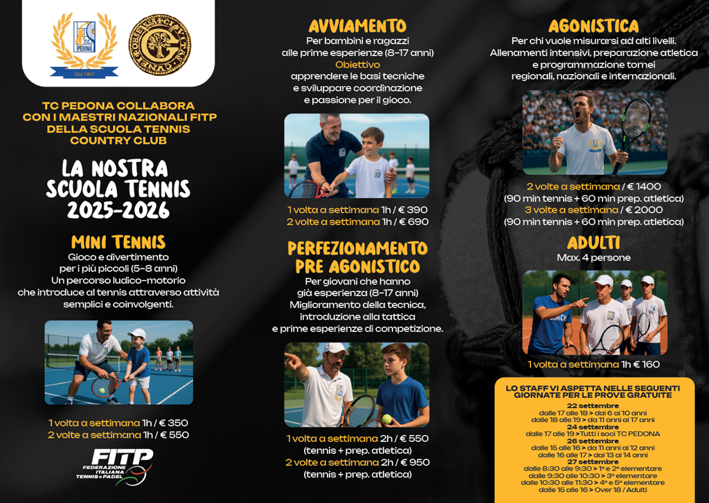 Il Tennis Comunale Pedona è felice di annunciare l’avvio della Scuola Tennis 2025/2026!