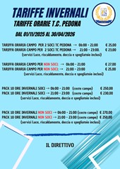 Tariffe campo coperto per la stagione 2025/2026 per i nostri due campi indoor.